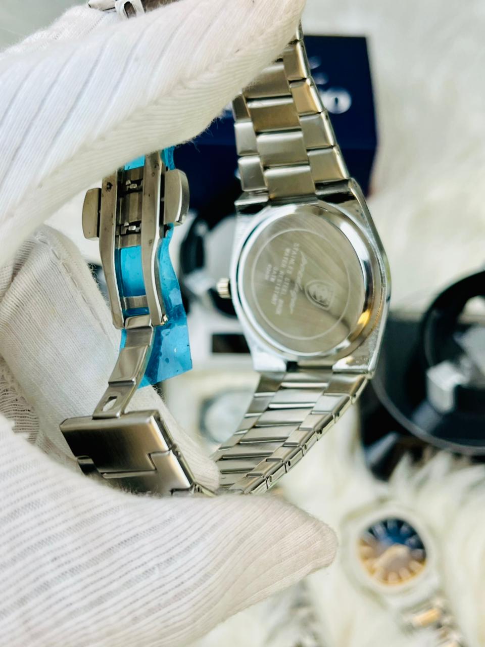 The Stainless Steel band provides a comfortable fit and enhances the watch’s luxury appeal.